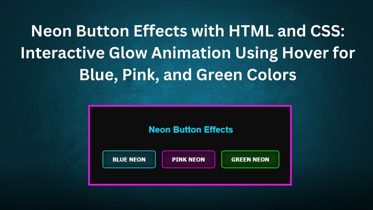 Want to add a futuristic, eye-catching effect to your website? In this tutorial, we’ll show you how to create Neon Button Effects using HTML, CSS, and JavaScript. These stylish glowing buttons will enhance your UI and make your web projects stand out with a modern, high-tech look.